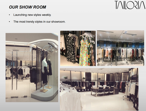 TAILORIA set up in the year of 2005 and is a leading fashion manufacturing company based in China, we manufacture for fashion brands all over the world,mainly in North America/Australia/Europe. We own a strong research and development team .We have been focusing on middle-high end fashion women’s apparel for 21 years.