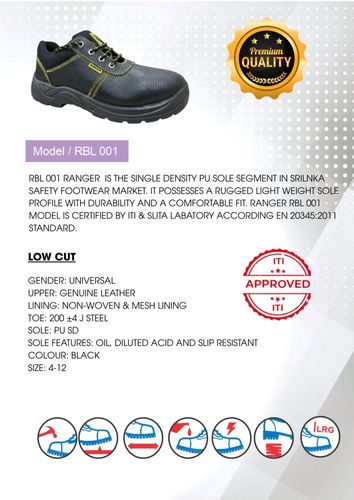 RBL 001 RANGER is a single-density PU sole safety footwear model in the Sri Lankan market. It features a rugged, lightweight sole profile that offers durability and a comfortable fit. The RANGER RBL 0 ...