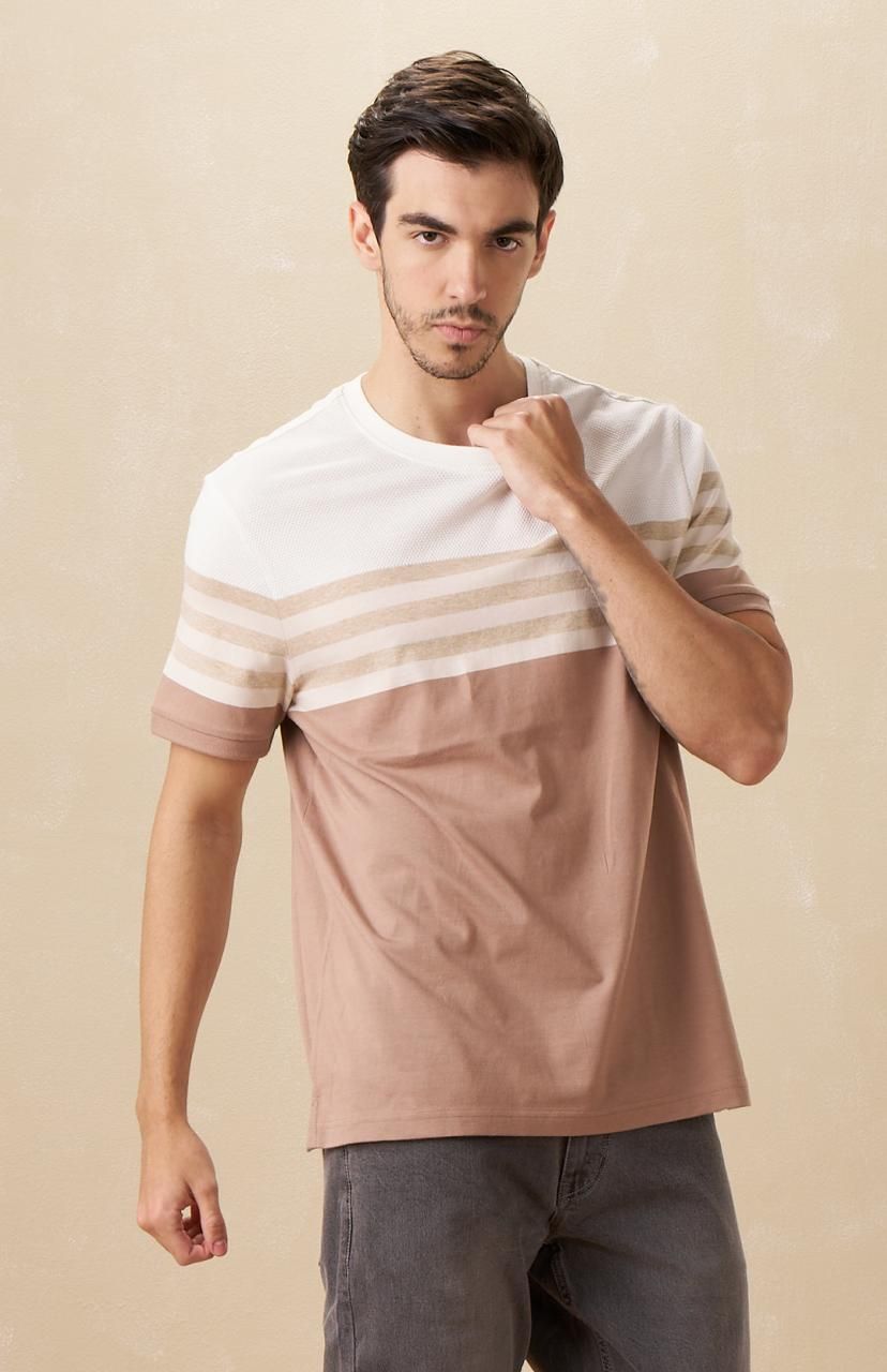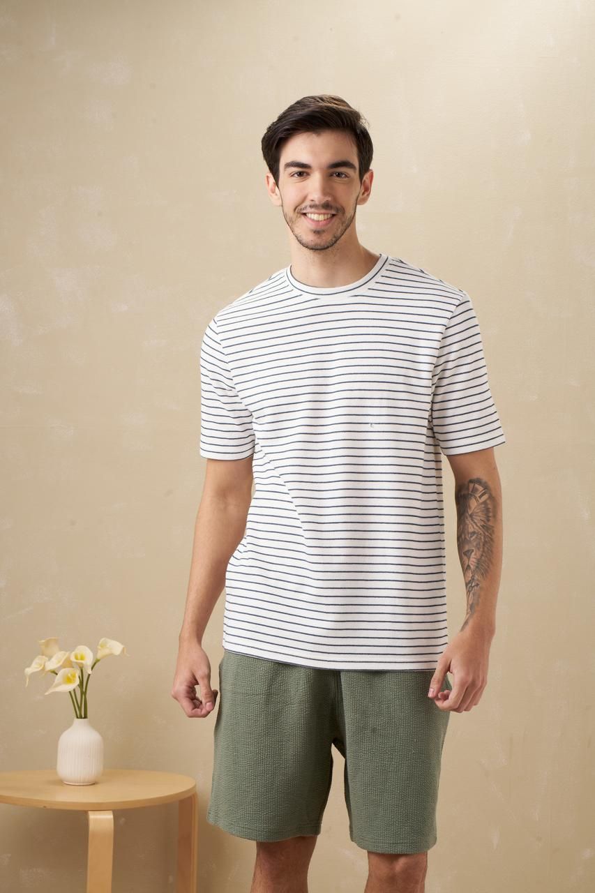 This men’s short sleeve T-shirt features a textured fabric with subtle horizontal patterns for a casual, laid-back look. Made from soft, breathable material, it provides all-day comfort and easy wear. ...