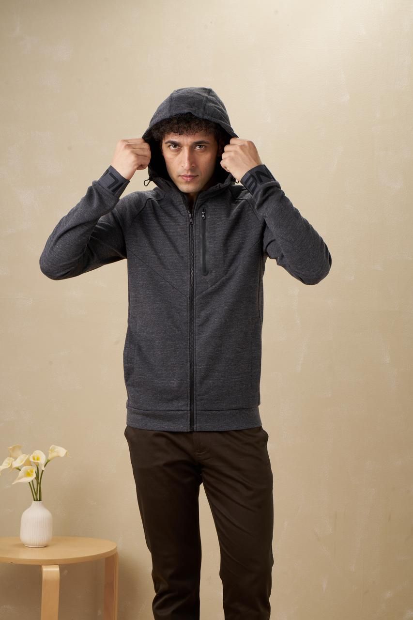 This men’s full-zip hoodie combines modern style with everyday comfort. Made from a soft, mid-weight fabric, it features a sleek dark grey finish and a structured fit. The design includes a front zipp ...