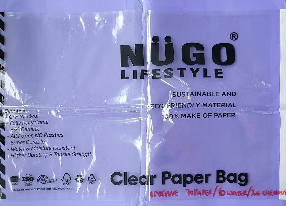 This clear bag is made of PAPER (ignore the blue colour background used to show the bag being clear)