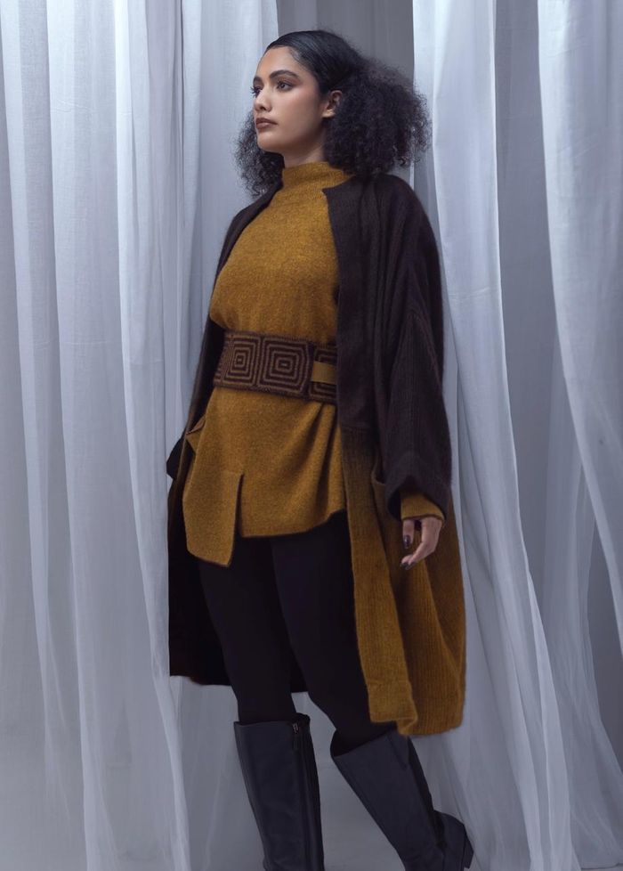 The Utpala Coat draws inspiration from the serene lines of Japanese silhouettes, reimagined in pure yak wool. Handwoven and naturally ombré-dyed, it flows with quiet ease a gesture of simplicity and depth. The fabric carries the raw strength of highland fibers, while its easy, open shape allows for layering and movement. Utpala is both grounding and luminous — a modern heirloom shaped by nature and stillness.