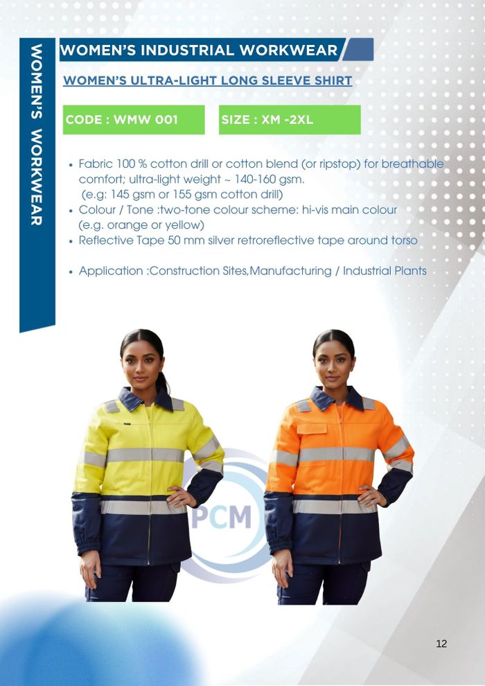 - Fabric 100 % cotton drill or cotton blend (or ripstop) for breathable comfort; ultra-light weight ~ 140-160 gsm.